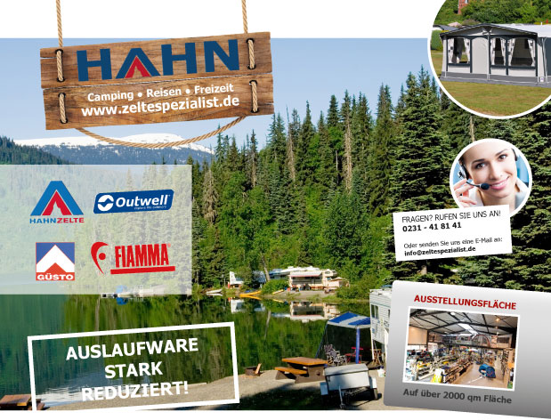 Kurzer Tipp am Rande für alle, die noch nicht die neueste Ausgabe von der Camping news Zeitung haben: Camping news bekommt Ihr auch am Messestand von unserem Partner “Hahn – Ihr Zeltespezialist” auf der Messe Reisen in Hamburg (17.2.-21.2.) in Halle A4 Stand 209 und auf der Messe Reisen + Camping in Essen (24.2.-28.2.) in Halle 2.0 Stand 2B22! Oder natürlich auch direkt bei Hahn in Dortmund im gut sortierten Zubehörshop!